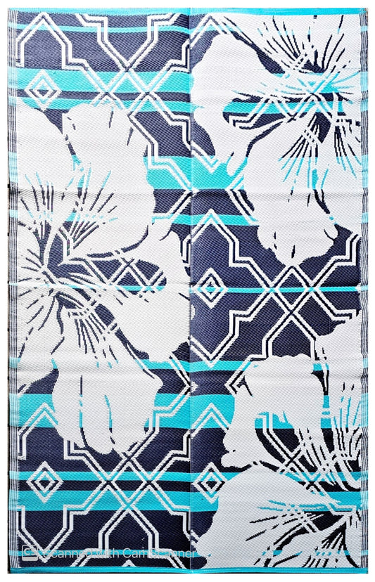 BalajeesUSA Outdoor rugs Plastic straw Patio Waterproof RV Camper Large Reversible awning mats Blue, black